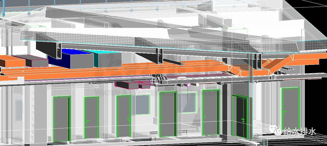 通過軟件建模及協(xié)調(diào),及時(shí)發(fā)現(xiàn)問題及對(duì)給排水管線設(shè)計(jì)作出反饋,是Revit軟件可視化設(shè)計(jì)的另一重要作用。